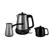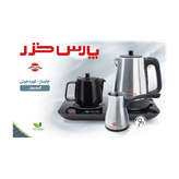دارای کتری استیل مدرج با ( ظرفیت 1.8 لیتر) مجهز به دستگیری پلاستیکی ودر پوش پلاستیکی جدا شونده (درپوش کتری مجزا از درپوش قوری است)